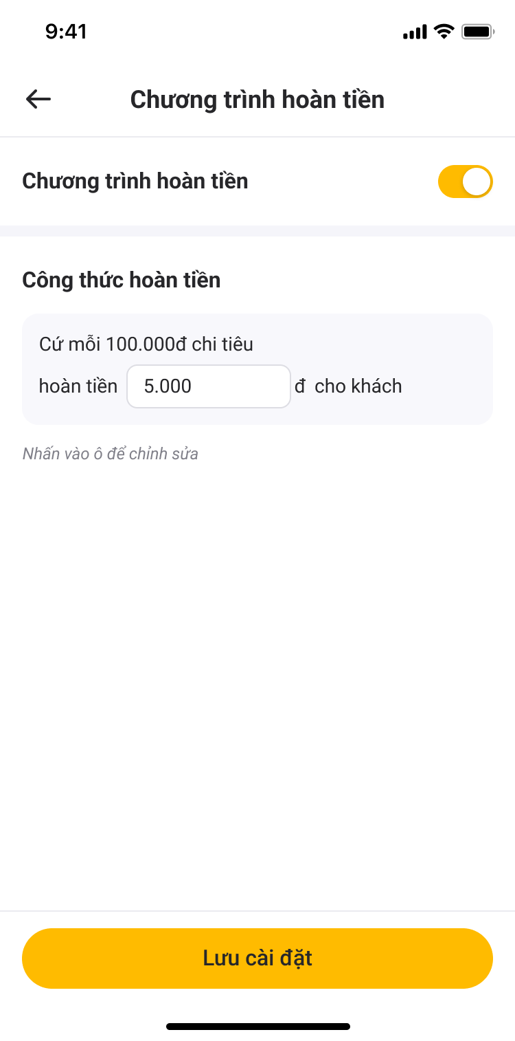 Giữ chân và khuyến khích khách hàng sử dụng thường xuyên với các chương trình khuyến mãi, hoàn tiền hấp dẫn, dễ dàng khởi tạo